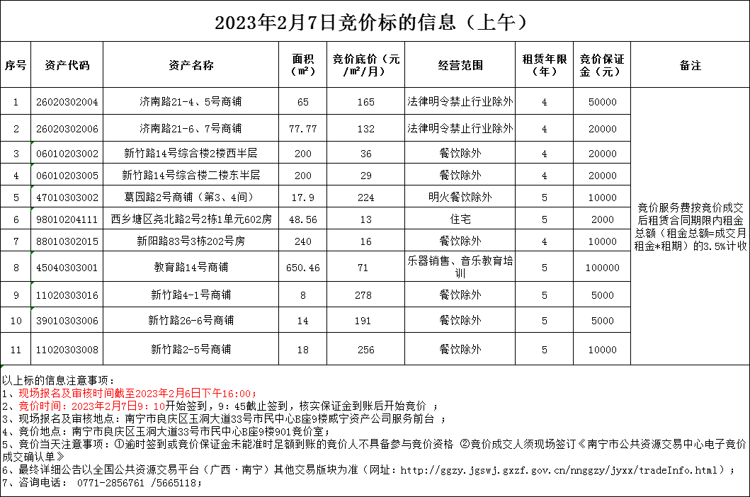 2023年2月7日競價標(biāo)的信息