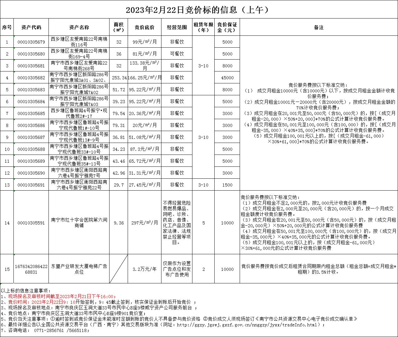 2023年2月22日競價標(biāo)的信息