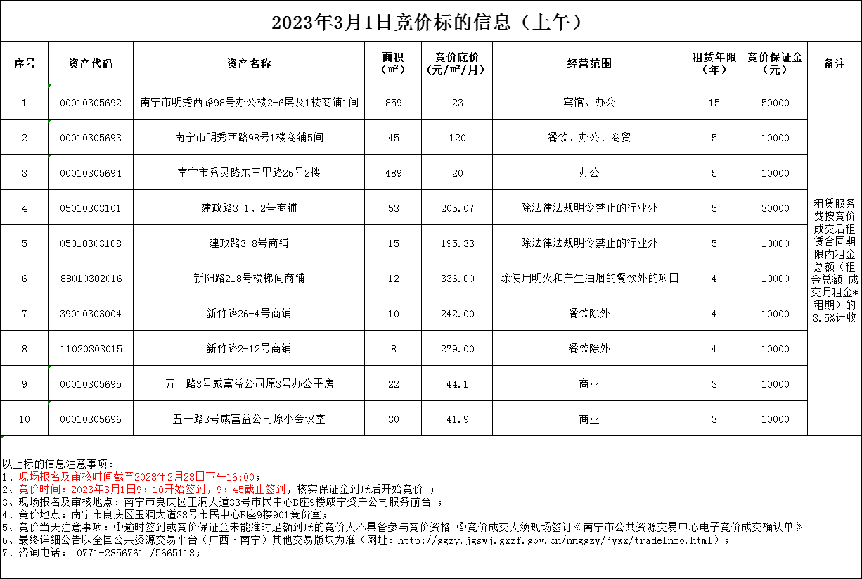 2023年3月1日競價標(biāo)的信息
