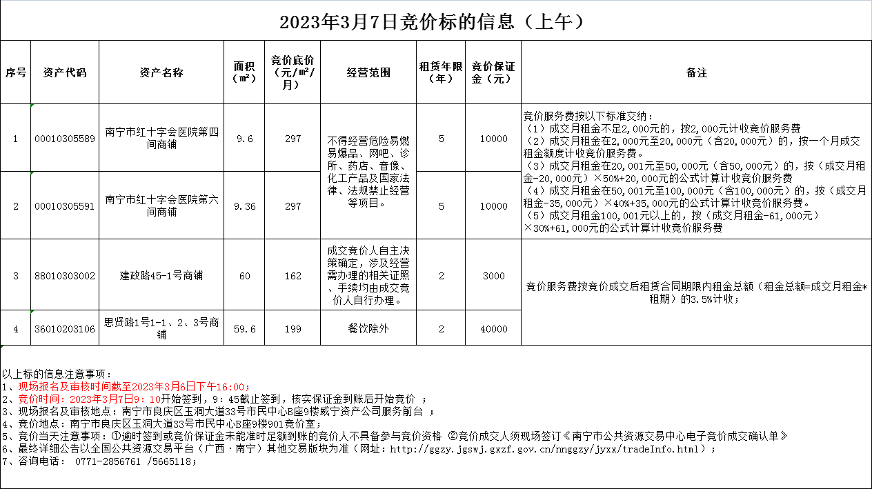 2023年3月7日競(jìng)價(jià)標(biāo)的信息