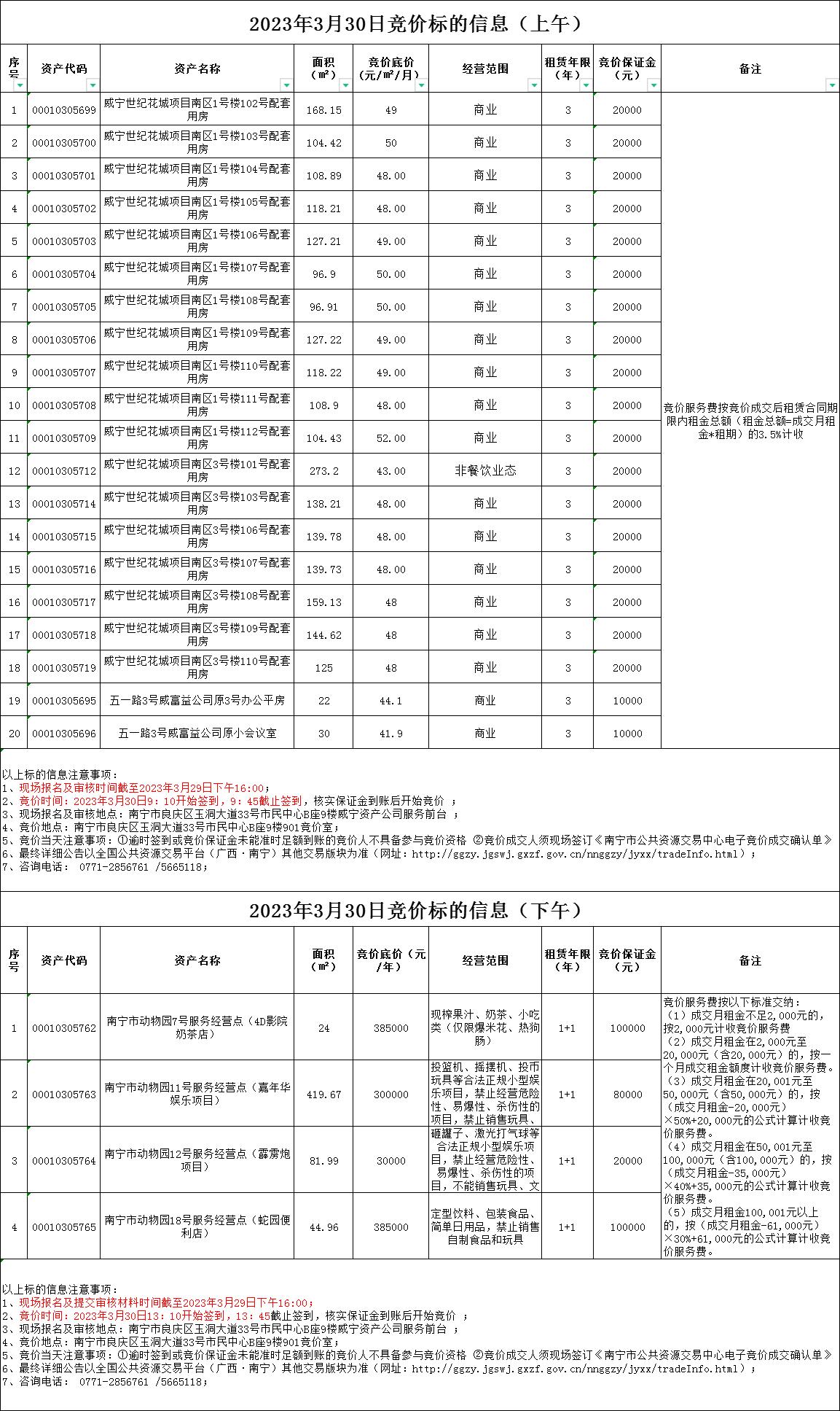 2023年3月30日競價(jià)標(biāo)的信息