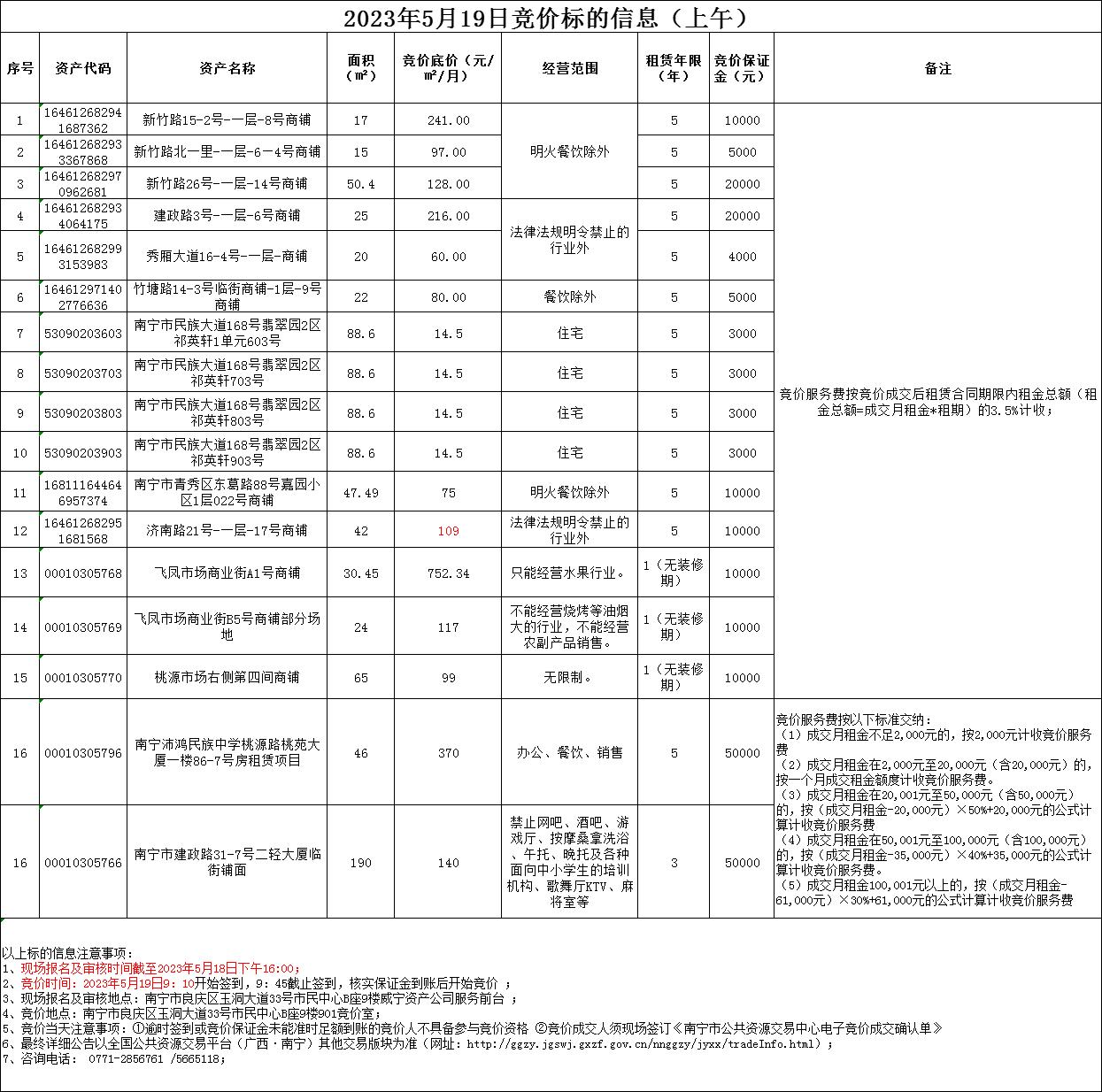 2023年5月19日競價標的信息