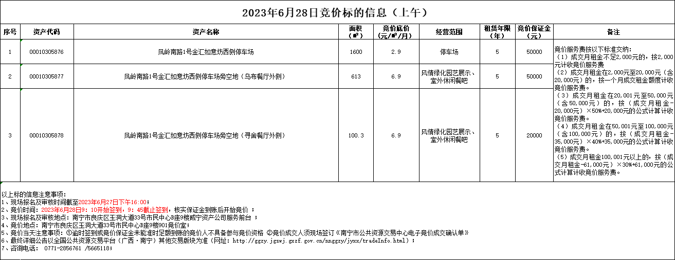 2023年6月28日競(jìng)價(jià)標(biāo)的信息