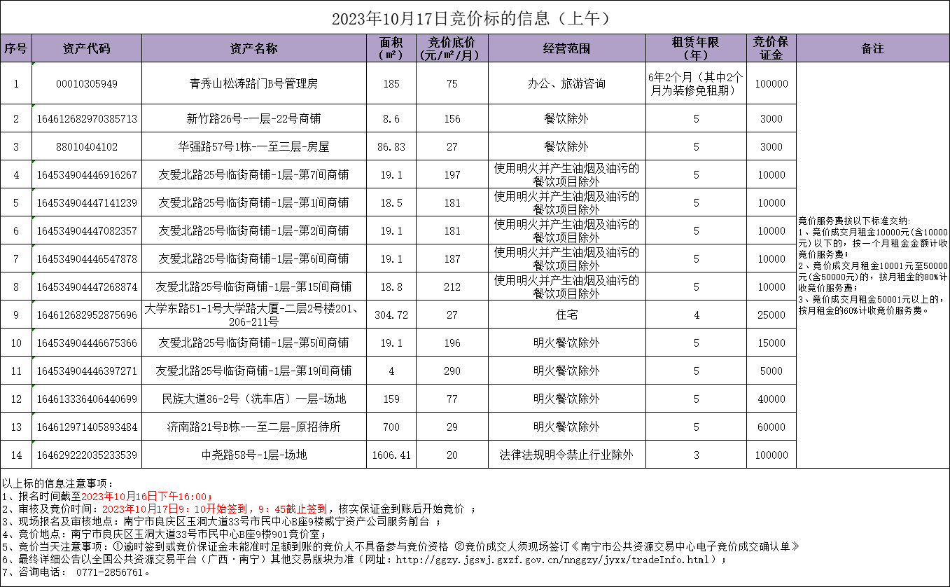 2023年10月17日競(jìng)價(jià)標(biāo)的信息