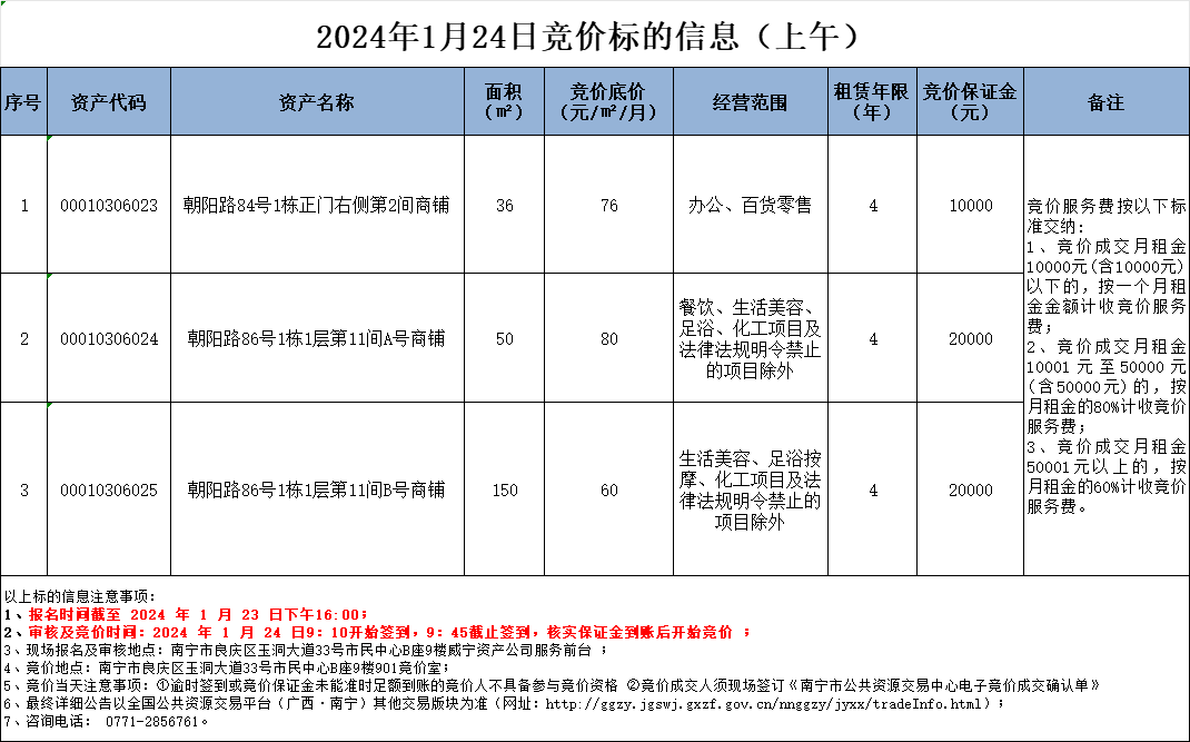 2024年1月24日競(jìng)價(jià)標(biāo)的信息