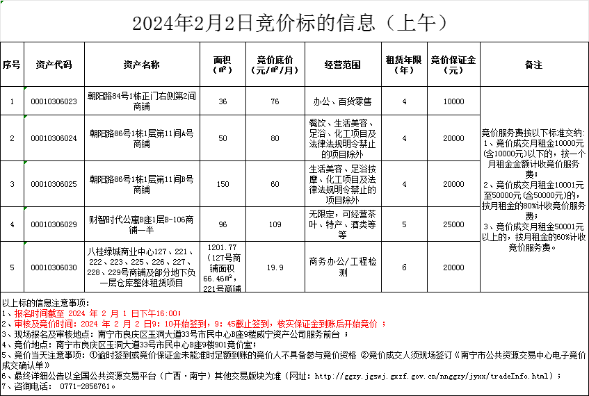 2024年2月2日競(jìng)價(jià)標(biāo)的信息(上午)
