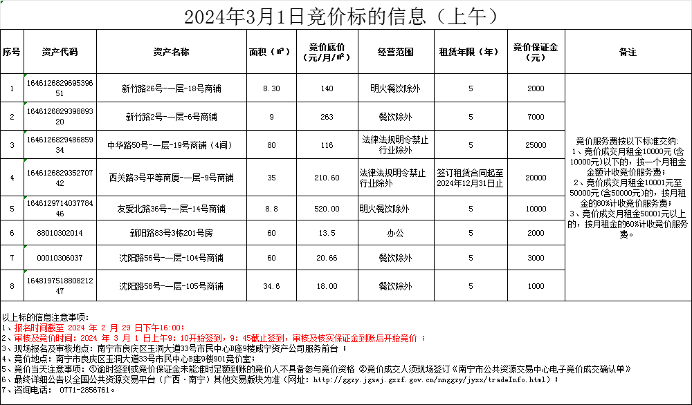 2024年3月1日競價標(biāo)的信息