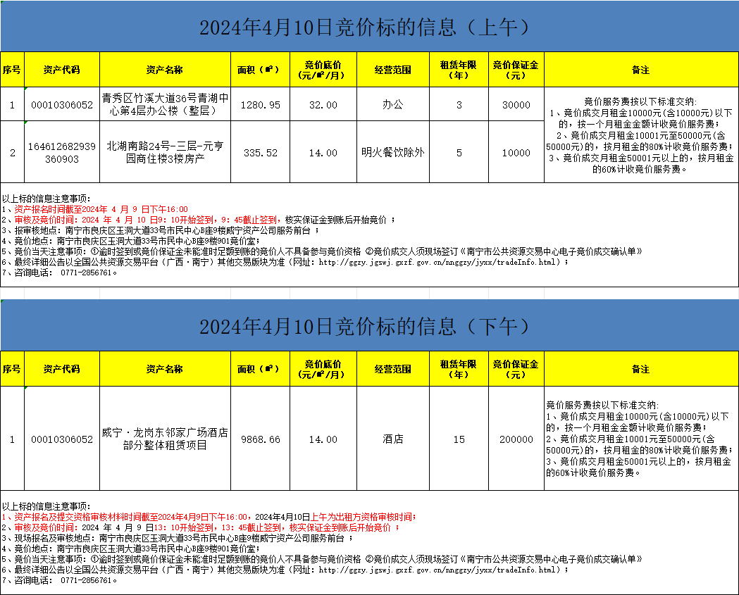 2024年4月10日競價標(biāo)的信息(現(xiàn)場競價)