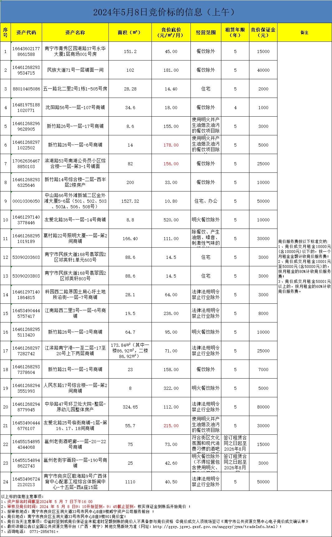 2024年5月8日競價標(biāo)的信息(現(xiàn)場競價)