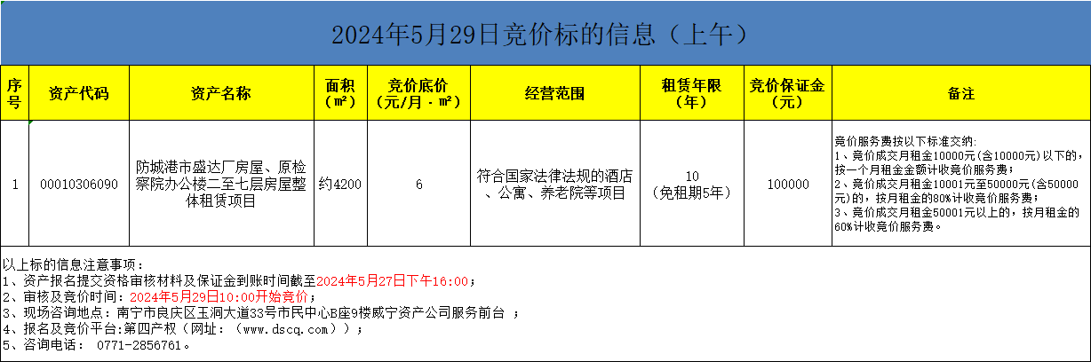 2024年5月29日競價標的信息(線上競價)