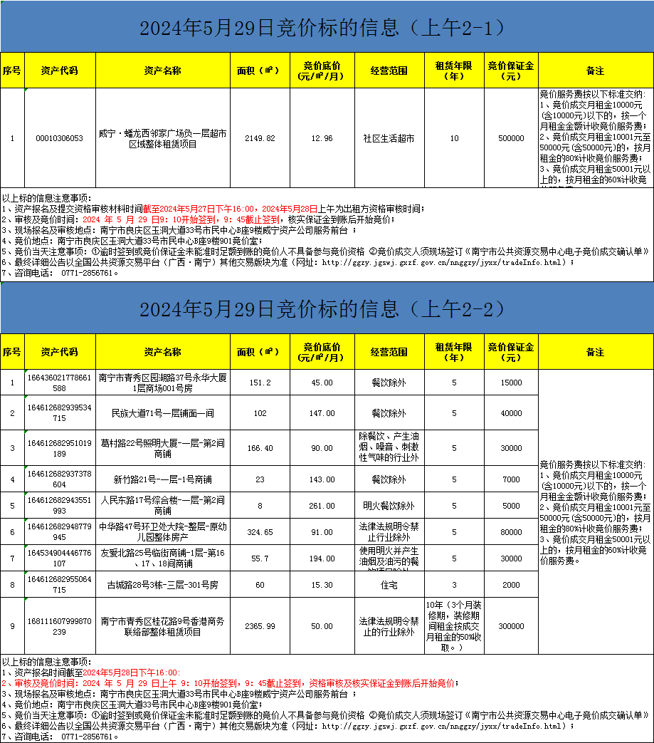 2024年5月29日競價標(biāo)的信息(現(xiàn)場競價)