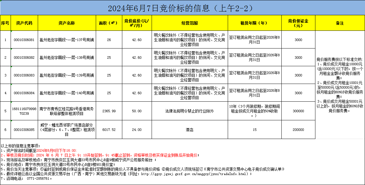 2024年6月7日競(jìng)價(jià)標(biāo)的信息(現(xiàn)場(chǎng)競(jìng)價(jià))
