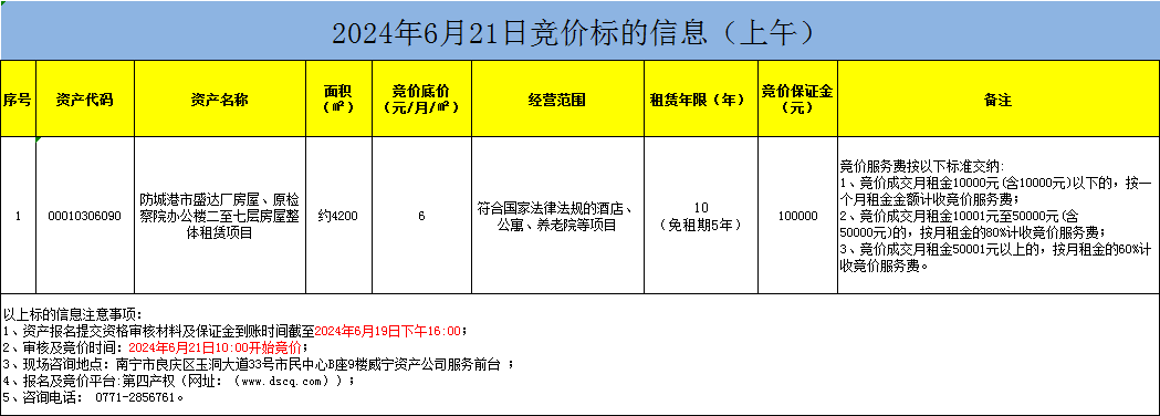 2024年6月21日競價標的信息(現(xiàn)場競價)