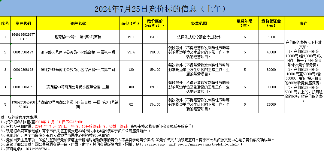 2024年7月25日競價標的信息(現(xiàn)場競價)