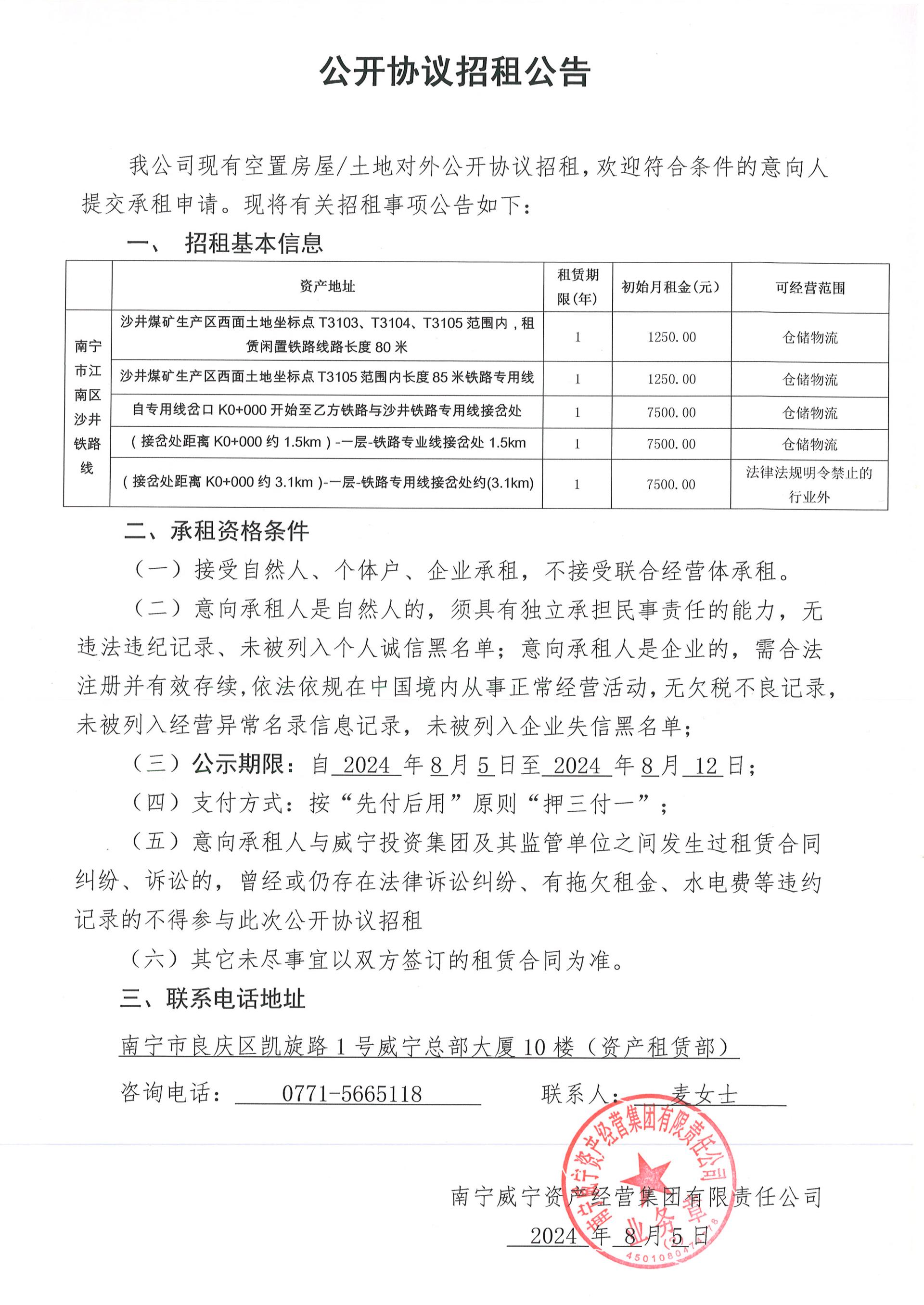 南寧市江南區(qū)沙井鐵路線等資產(chǎn)公開協(xié)議招租