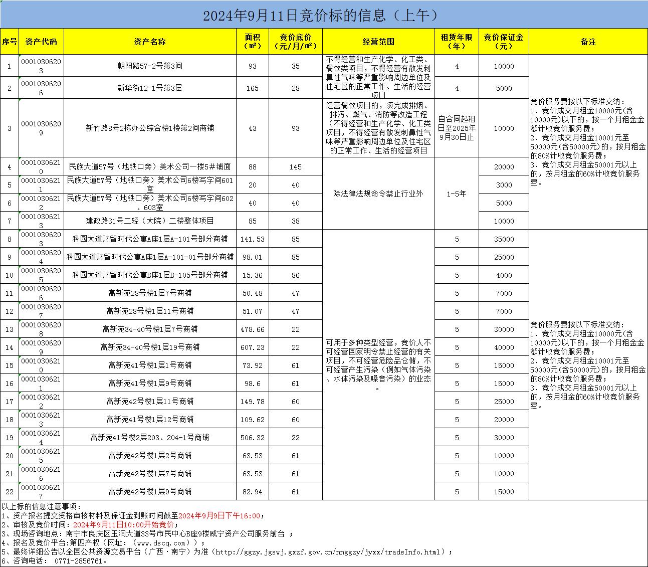 2024年9月11日競價(jià)標(biāo)的信息(線上競價(jià))