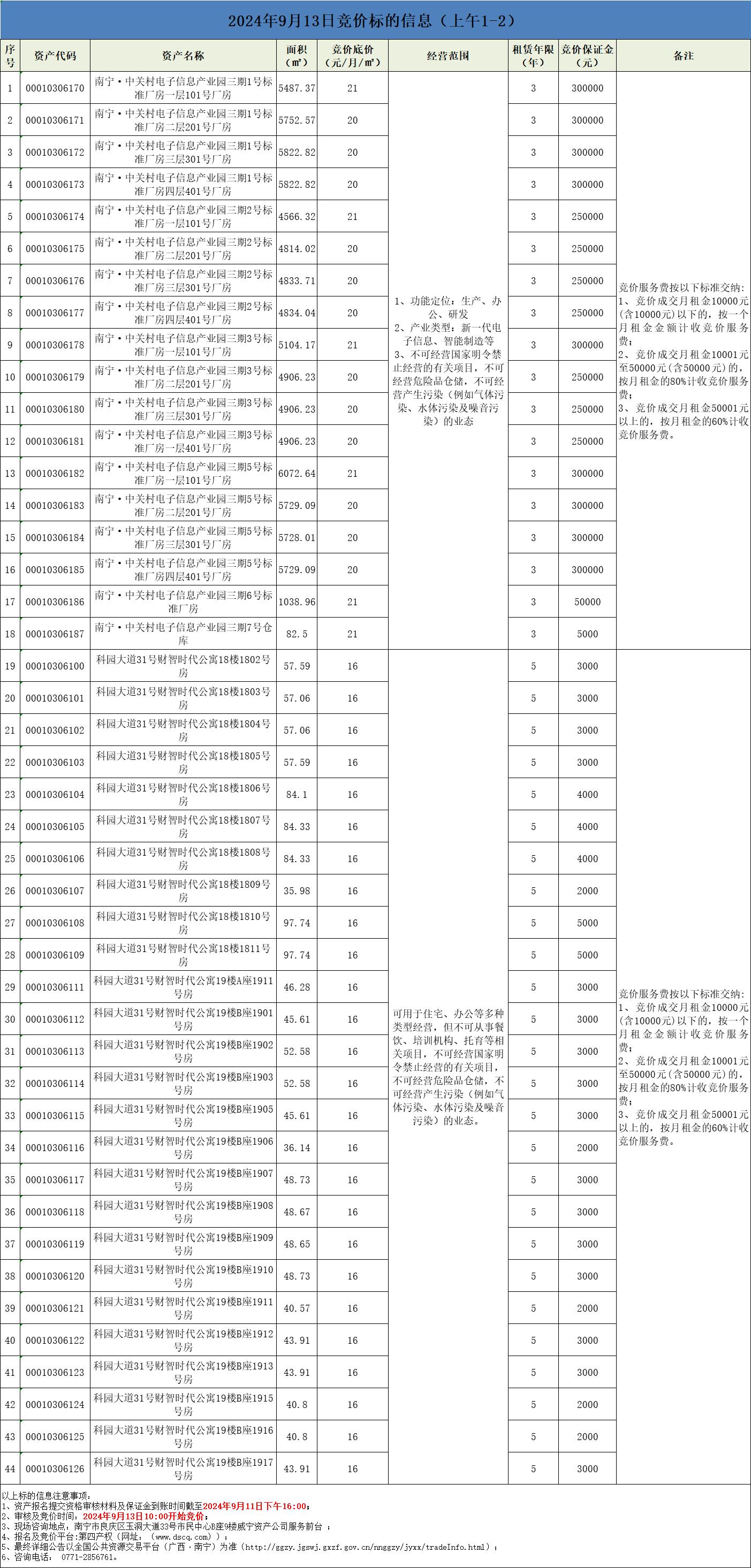 2024年9月13日競價標的信息(線上競價1-2)