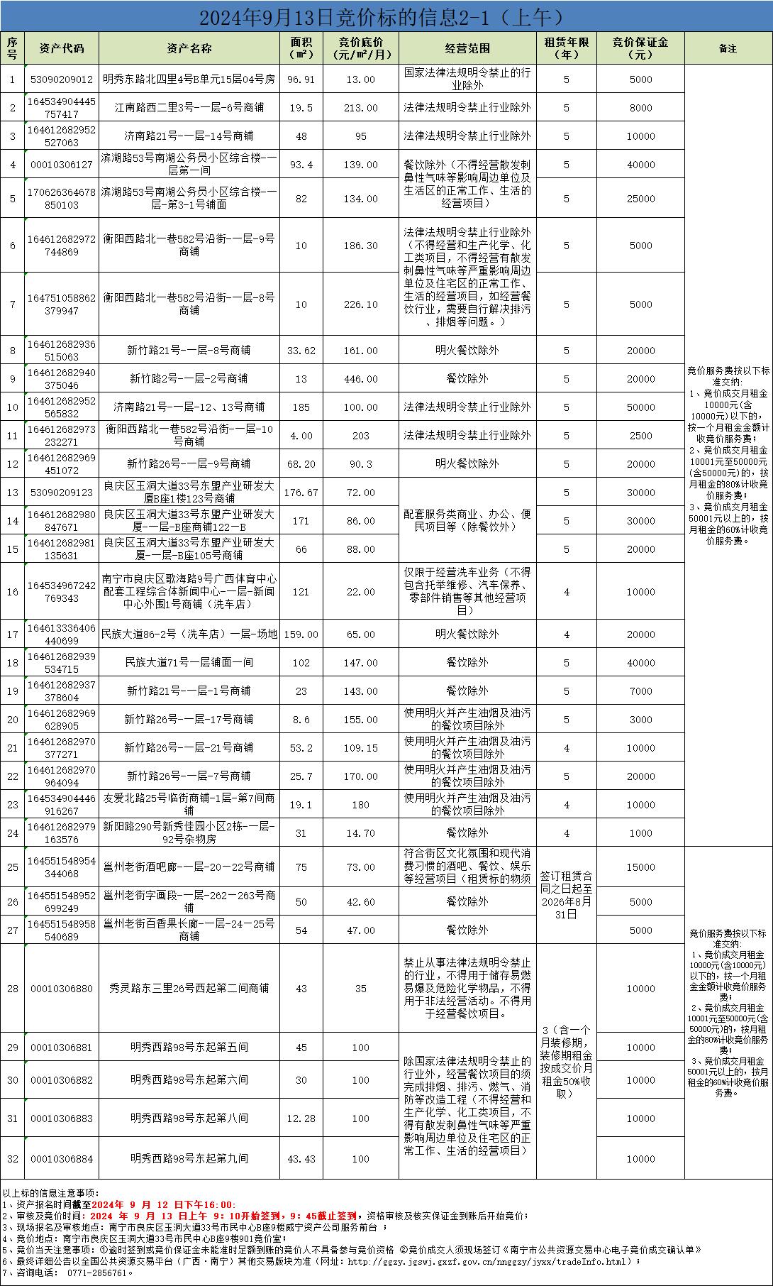 2024年9月13日競價標(biāo)的信息(現(xiàn)場競價2-1)