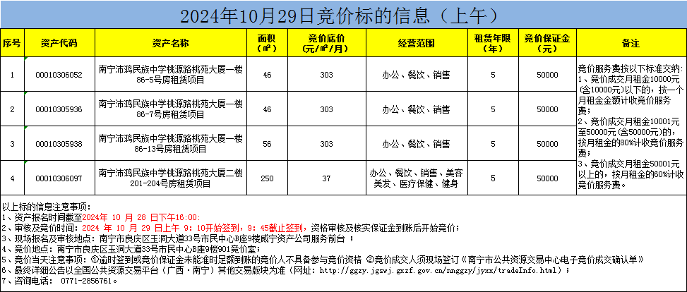2024年10月29日上午競價標(biāo)的信息(現(xiàn)場競價)