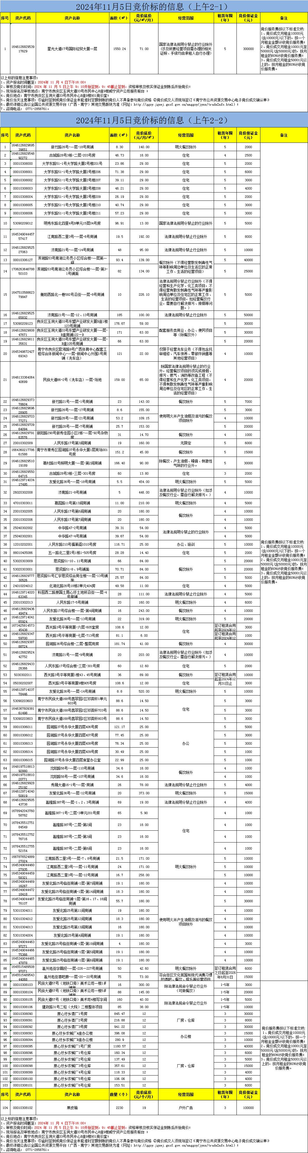 2024年11月5日上午競價(jià)標(biāo)的信息(現(xiàn)場競價(jià))
