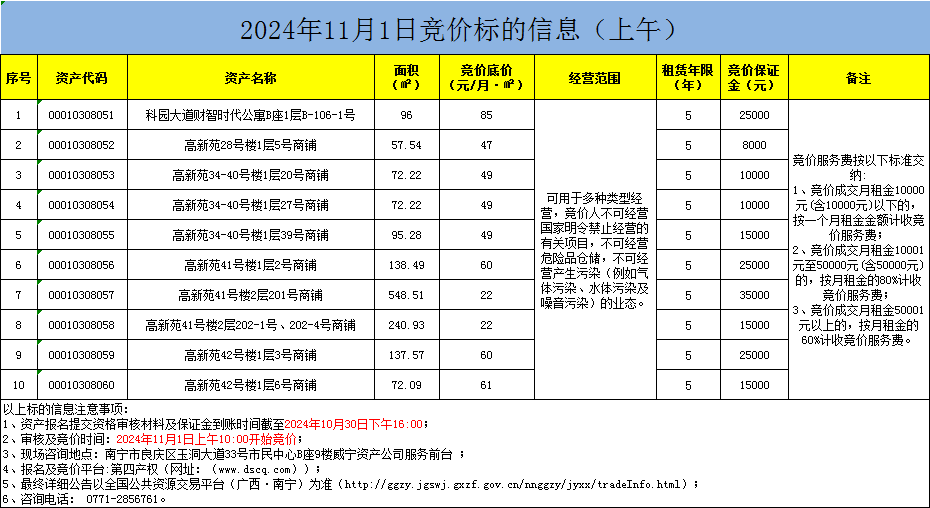 2024年11月1日競(jìng)價(jià)標(biāo)的信息(線上競(jìng)價(jià))