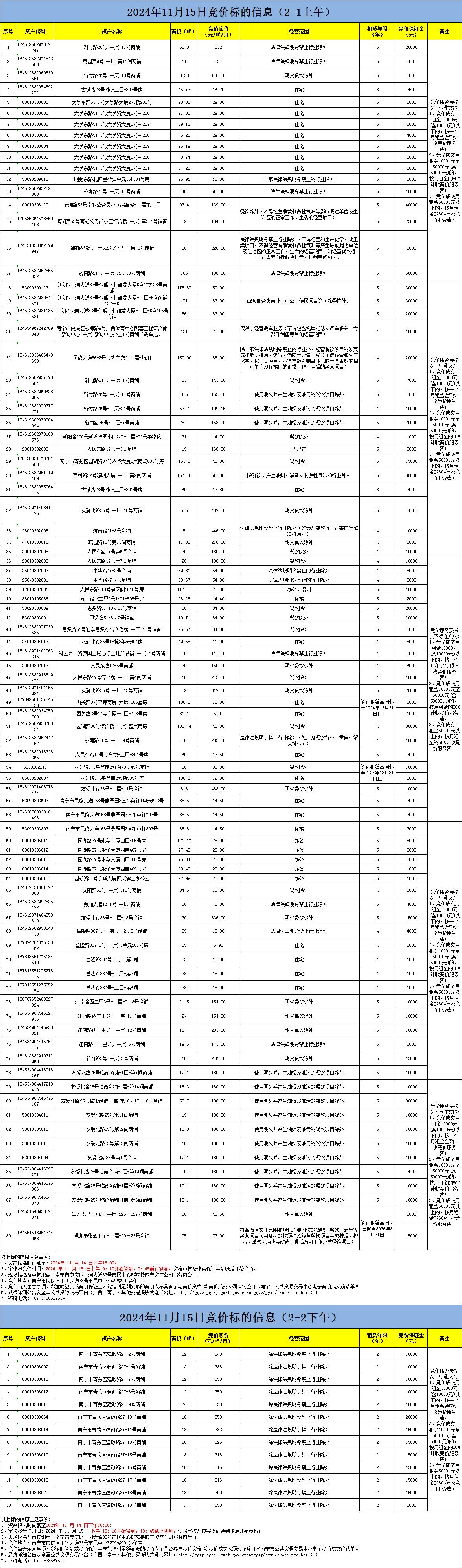 2024年11月15日上午/下午競價(jià)標(biāo)的信息(現(xiàn)場競價(jià))