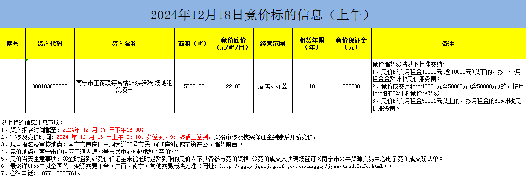 2024年12月18日競價標(biāo)的信息(現(xiàn)場競價)