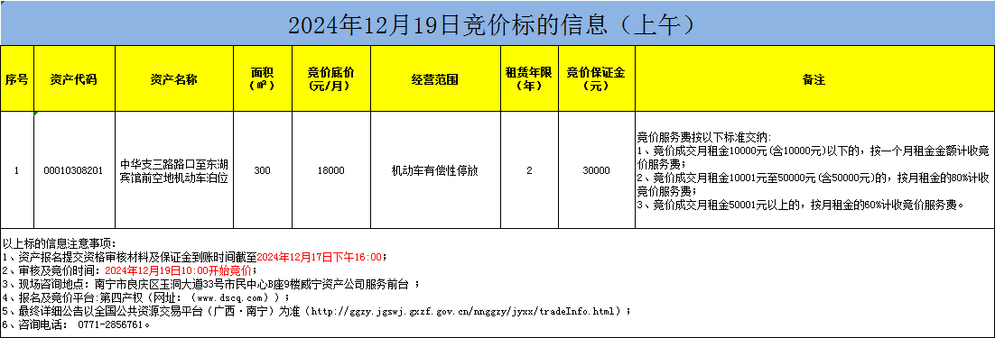 2024年12月19日競(jìng)價(jià)標(biāo)的信息(線上競(jìng)價(jià))