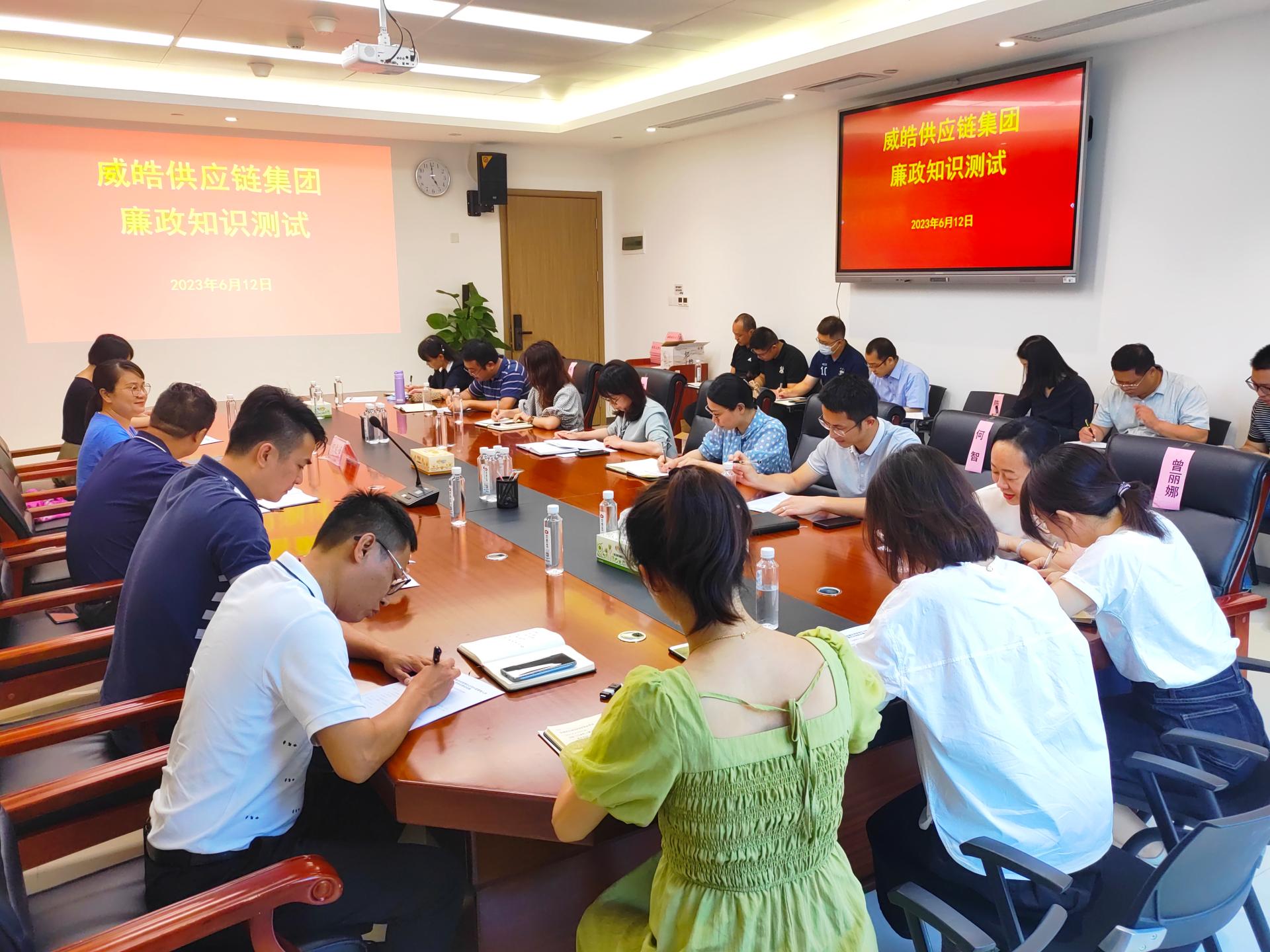 2023年6月12日,威皓供應鏈集團以“集體廉政談話+警示教育培訓+廉政法規(guī)知識測試”組合形式,為履新人員上好“第一課”,把好“起步關”,為公司運營筑起廉政防火墻,扎實推動清廉企業(yè)建設工作。威皓供應鏈集團黨委書記、董事長鄧露晶開展集體廉政談話,紀委書記何俊峰開展警示教育培訓。