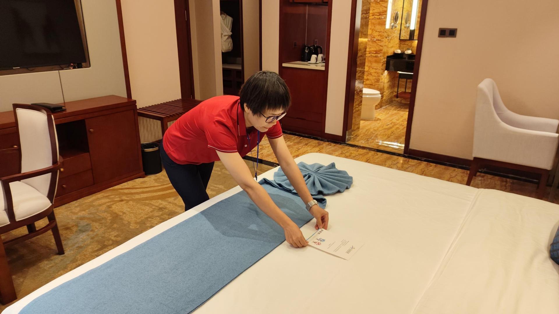 為圓滿完成學青會住宿服務保障工作,威邕城市運營集團抽調下屬四家酒店精干力量組成住宿服務團隊,率先沖鋒在賽事保障的第一線。他們所負責的住房分配、居民服務中心服務和客房服務三大模塊工作任務艱巨,住宿服務團隊通過細致周到的貼心服務和過硬的專業(yè)能力,構成本屆學青會最溫暖的一道風景線。