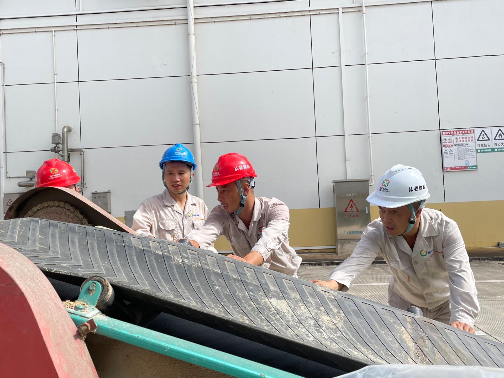 唐國(guó)強(qiáng)和同事們調(diào)整入糧設(shè)備位置