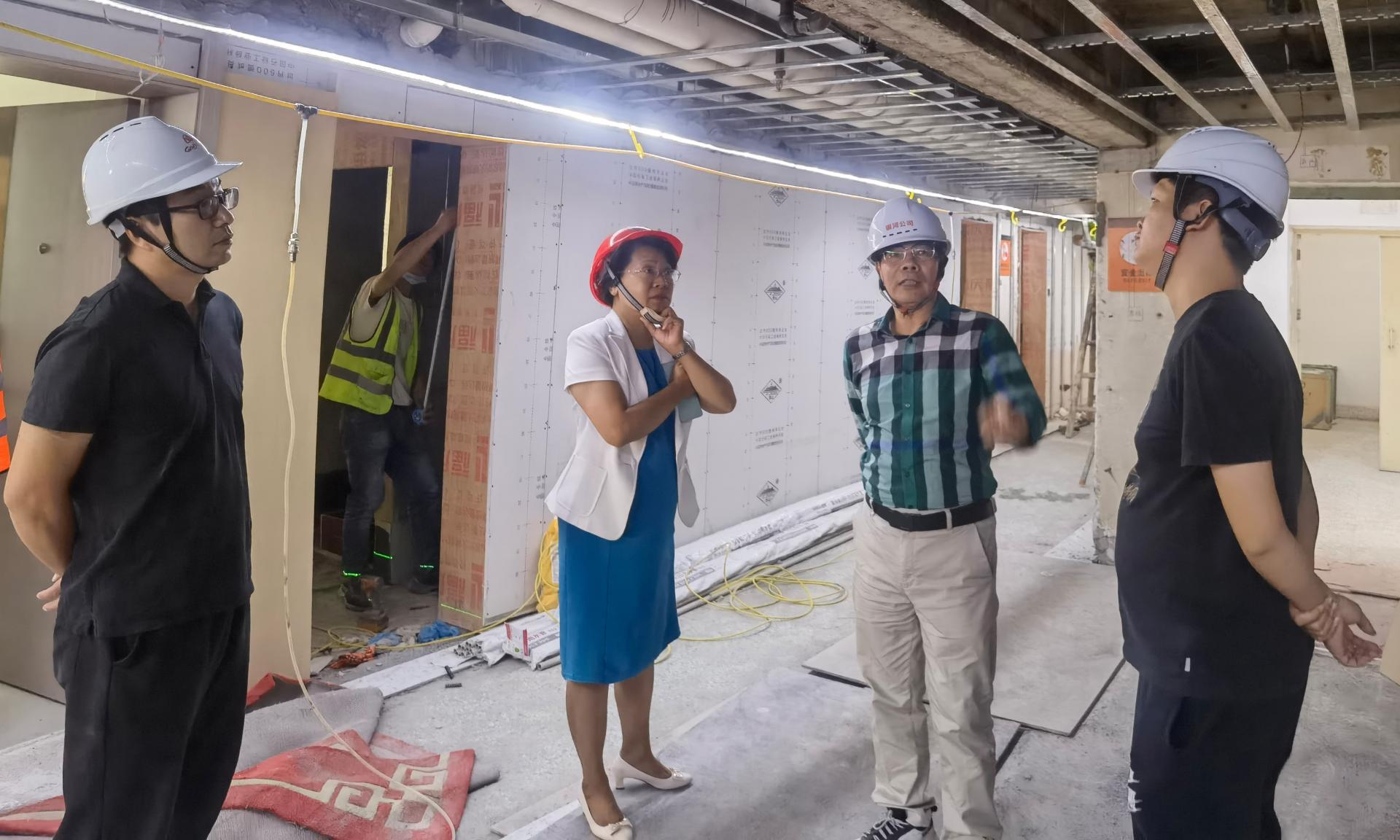 唐菲(右三)到施工現(xiàn)場(chǎng)檢查