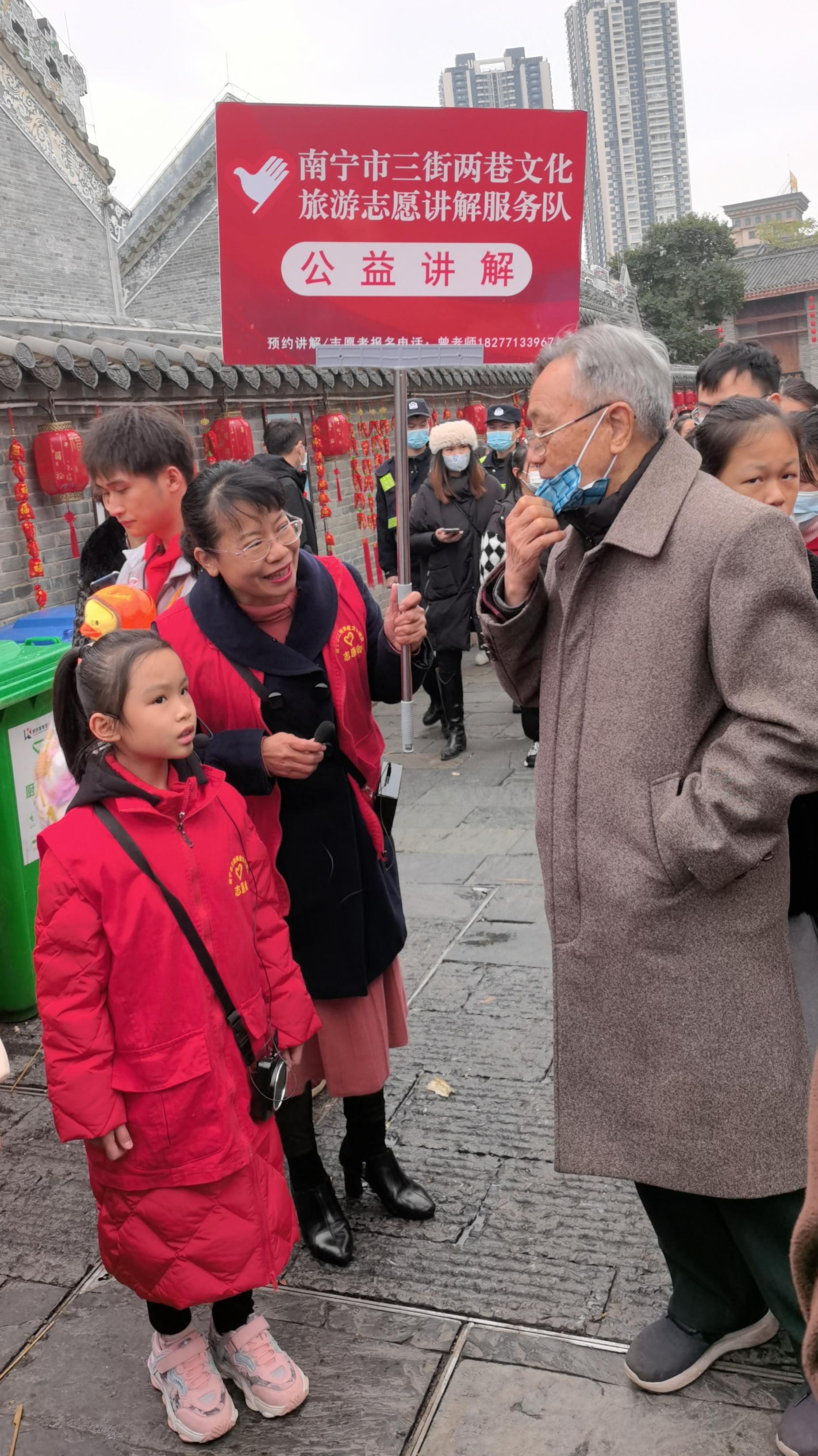 唐菲(左二)在三街兩巷開展志愿公益活動(dòng)講解