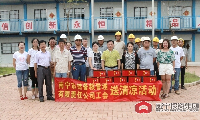 儲備糧公司開展夏日送清涼活動 時值盛夏,烈日高溫炙烤下的大地白氣升騰。儲備糧公司黨委、工會始終牽掛著揮汗如雨持續(xù)奮戰(zhàn)在夏糧收購入庫、糧油加工車間和五象糧油基地項目建筑施工現(xiàn)場的員工,組織開展夏日送清涼慰問活動?! ?017年8月17日上午,公司黨委、工會領(lǐng)導(dǎo)帶著解暑清涼飲料,看望慰問沙井糧庫夏糧收購倉房?;藛T、大米加工和食用油灌裝車間操作人員、五象糧油食品加工倉儲基地項目建筑施工現(xiàn)場管