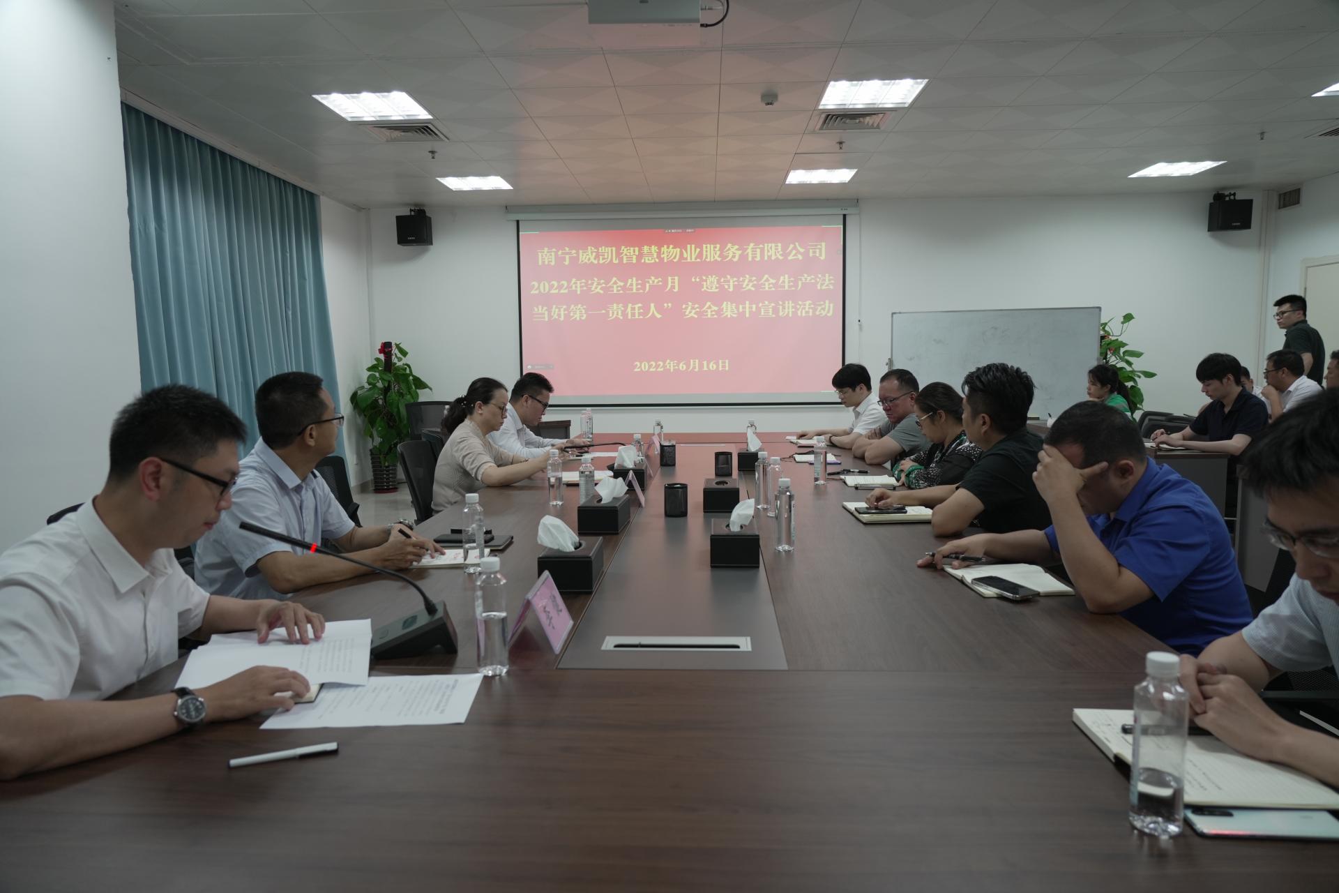 場2022年6月,是第21個全國“安全生產(chǎn)月”。威凱智慧物業(yè)深入貫徹學習習近平總書記、李克強總理的重要指示精神,嚴格落實國務院安委會、國資委的部署要求,就安全生產(chǎn)工作進行進一步細化,下發(fā)到各部門各監(jiān)管公司各托管物業(yè)逐一落實,向黨和人民交出一份滿意的答卷。安全教育不松懈防患于未“燃”6月16日下午,威凱智慧物業(yè)邀請南寧市安全管理協(xié)會會長夏...