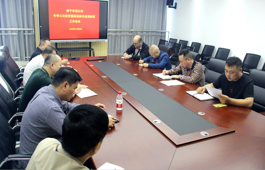 2020年11月20日,威寧市場公司副總經(jīng)理方莫彥主持召開冬春季火災(zāi)防控暨新冠肺炎疫情防控工作會議。會議傳達(dá)全區(qū)、南寧市冬春火災(zāi)防控工作電視電話會議以及南寧威寧集團(tuán)冬季火災(zāi)防控暨新冠肺炎疫情防控工作會會議精神,就威寧市場公司當(dāng)前火災(zāi)防控和疫情防控工作進(jìn)行部署。