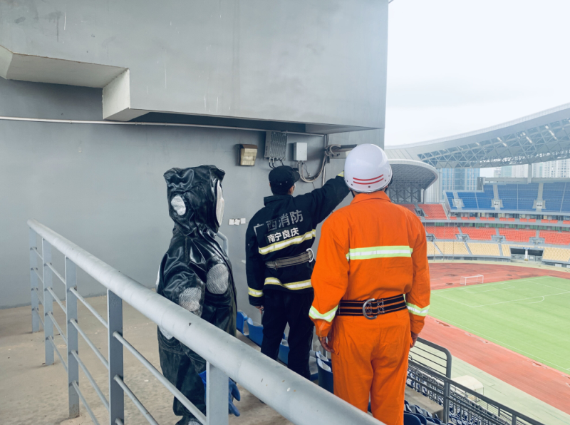 近日,威寧文體公司管理人員在主體育場A區(qū)五層發(fā)現(xiàn)一個直徑大約70厘米的馬蜂窩,不時有馬蜂飛來飛去,為防止馬蜂傷人,文體公司聯(lián)系良慶消防救援大隊,請求支援幫助。