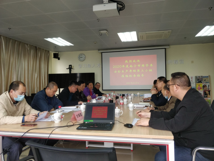 2021年2月2日,南寧市國資委安全生產(chǎn)工作考核組一行六人,到集團(tuán)考核 2020 年安全生產(chǎn)目標(biāo)任務(wù)完成情況。