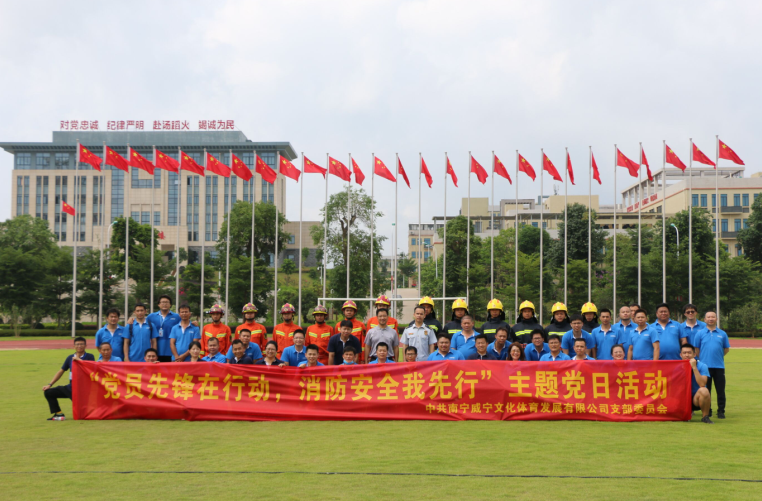 為進(jìn)一步提升黨員干部的消防安全意識,掌握消防基本知識和技能,發(fā)揮黨員先鋒模范帶頭作用,預(yù)防消防安全事故,2020年7月3日上午,威寧文體公司黨支部圍繞“黨員先鋒在行動,消防安全我先行”主題,在廣西(南寧)消防培訓(xùn)基地開展主題黨日活動。黨支部全體黨員、發(fā)展對象、積極分子和職工群眾共40人參加了活動。