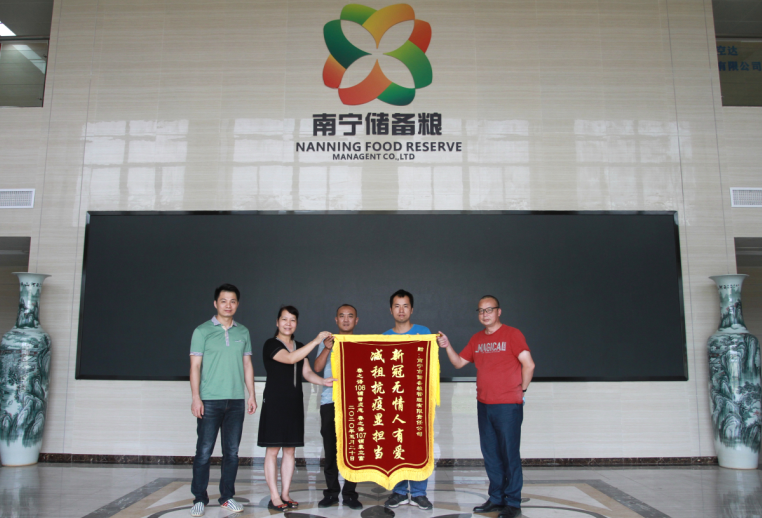 2020年5月27日,承租南寧市儲(chǔ)備糧公司白沙大道江南新興苑1棟春之語106號(hào)、107號(hào)鋪面的兩位承租戶送來感謝錦旗,由衷感謝儲(chǔ)備糧公司在疫情期間主動(dòng)減免租金。
