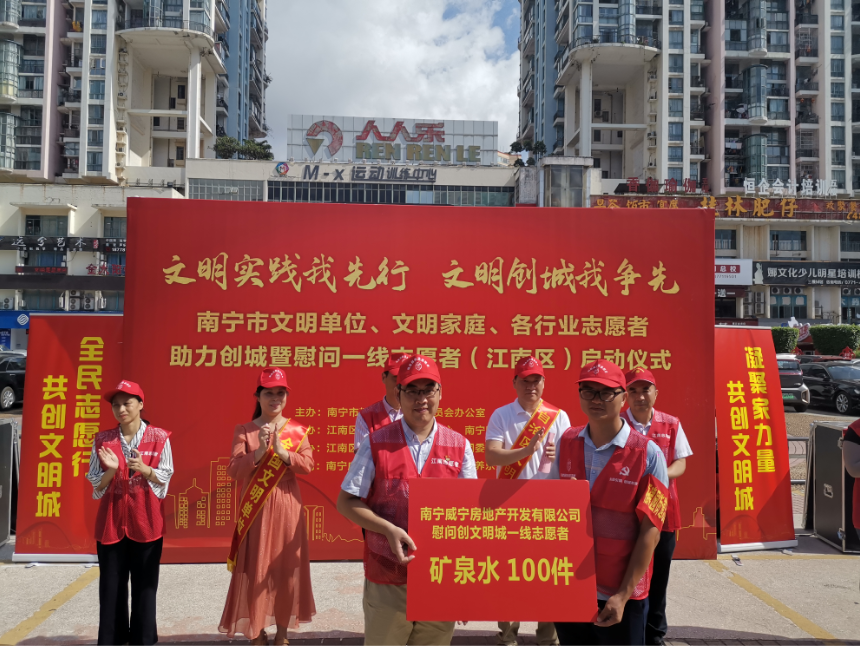 7月17日,威寧房地產(chǎn)公司黨委所屬三個黨支部參加由南寧市文明辦、江南區(qū)文明辦、南寧晚報“愛幫之家”開展的“文明實踐我先行 文明創(chuàng)城我爭先”志愿服務(wù)活動,向江南區(qū)社區(qū)志愿者捐贈礦泉水,并現(xiàn)場清潔小區(qū)、引導(dǎo)交通文明,發(fā)放市民手冊,規(guī)整亂停放的共享單車,用實際行動助力創(chuàng)城工作。