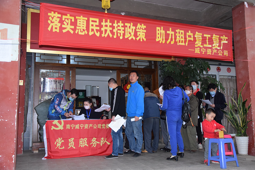 復(fù)工復(fù)產(chǎn)政策指導(dǎo)辦理不動(dòng)產(chǎn)權(quán)證自新冠疫情發(fā)生以來,威寧資產(chǎn)公司在南寧市委市政府以及市國資委、南寧威寧集團(tuán)大力來支持下,積極響應(yīng)國家“六穩(wěn)”“六?!碧?hào)召,堅(jiān)持以務(wù)實(shí)高效的工作作風(fēng)詮釋使命擔(dān)當(dāng),全面履行國有企業(yè)的經(jīng)濟(jì)責(zé)任、政治責(zé)任和社會(huì)責(zé)任,為奪取疫情防控和經(jīng)濟(jì)社會(huì)發(fā)展雙勝利貢獻(xiàn)力量。內(nèi)外齊力,減租免租顯擔(dān)當(dāng)。受新冠肺炎疫情影響,不少承租商戶延遲復(fù)工時(shí)間,租金支出壓力巨大。面對(duì)疫情,公司黨委要求業(yè)務(wù)部