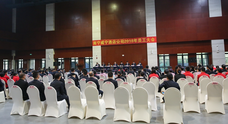 “2017年五象山莊不斷優(yōu)化提升出品與服務(wù)水準(zhǔn),在餐飲、客房方面落地實(shí)施28項(xiàng)個(gè)性化服務(wù),完成兩輪餐飲出品創(chuàng)新研發(fā),沉淀12道招牌菜式,攜程網(wǎng)評(píng)4.7分,穩(wěn)居同級(jí)酒店前茅……”、“以服務(wù)之心待客人,以飽滿的工作熱情,將微笑服務(wù)延伸至接待客人中,力求為客人提供最優(yōu)質(zhì)的服務(wù),讓每位客人都體會(huì)到真誠、熱情、賓至如歸的感覺……”在威寧酒店公司首次員工大會(huì)上,公司2017年先進(jìn)集體代表五象山莊、優(yōu)秀員工代表陳婷婷分別在會(huì)上作先進(jìn)經(jīng)驗(yàn)介紹發(fā)言。