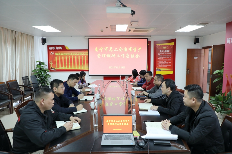 11月18日,南寧市總工會(huì)副主席陳國(guó)任一行5人到南寧威寧集團(tuán)開(kāi)展國(guó)有資產(chǎn)管理工作調(diào)研。集團(tuán)紀(jì)委書(shū)記韋登香及相關(guān)部門(mén)負(fù)責(zé)人參加調(diào)研。