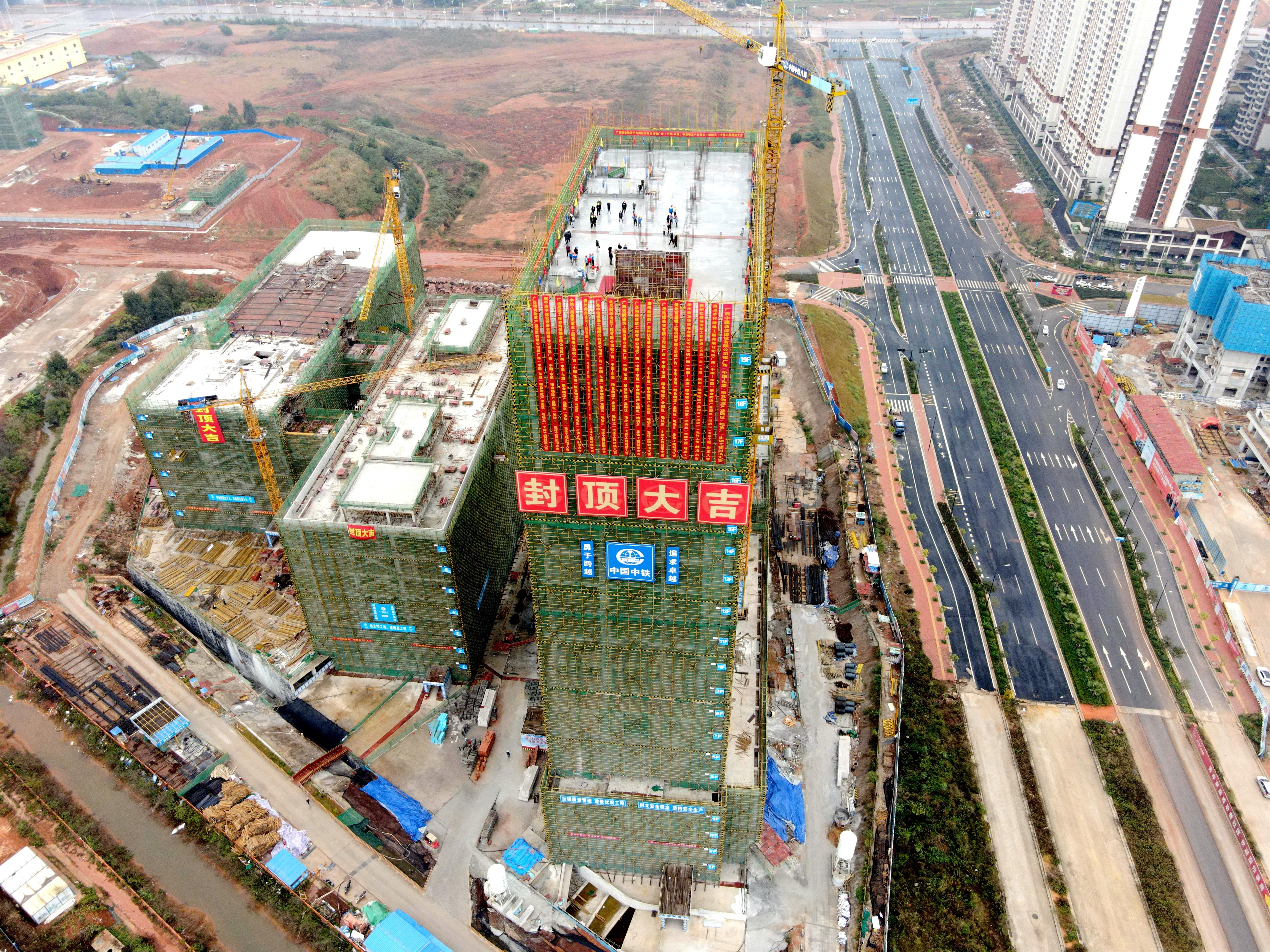 廣西(中國-東盟)糧食物流產(chǎn)業(yè)園區(qū)項目物流板塊商務(wù)中心主體結(jié)構(gòu)實(shí)現(xiàn)全面封頂