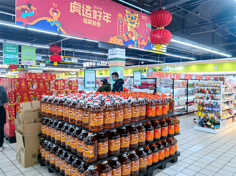 大型商超中的“桂井”糧油產(chǎn)品農(nóng)貿(mào)市場年貨商品豐富農(nóng)貿(mào)市場肉菜商品保供價(jià)穩(wěn)春節(jié)臨近,年味兒漸濃,農(nóng)副產(chǎn)品消費(fèi)市場一片紅火。威寧市場公司積極發(fā)揮國有農(nóng)產(chǎn)品銷售主渠道作用,全力做好春節(jié)期間市民生活必需品保供工作,守好市民的“菜籃子”“米袋子”。在新陽路水街市場,新年的喜慶感撲面而來,處處呈現(xiàn)供銷兩旺的喜人景象,臘肉、羊蹄、大閹雞……各攤位前人頭攢動(dòng),比往日更加熱鬧。運(yùn)送果菜的車輛進(jìn)出不斷,生猛海鮮和魚蝦