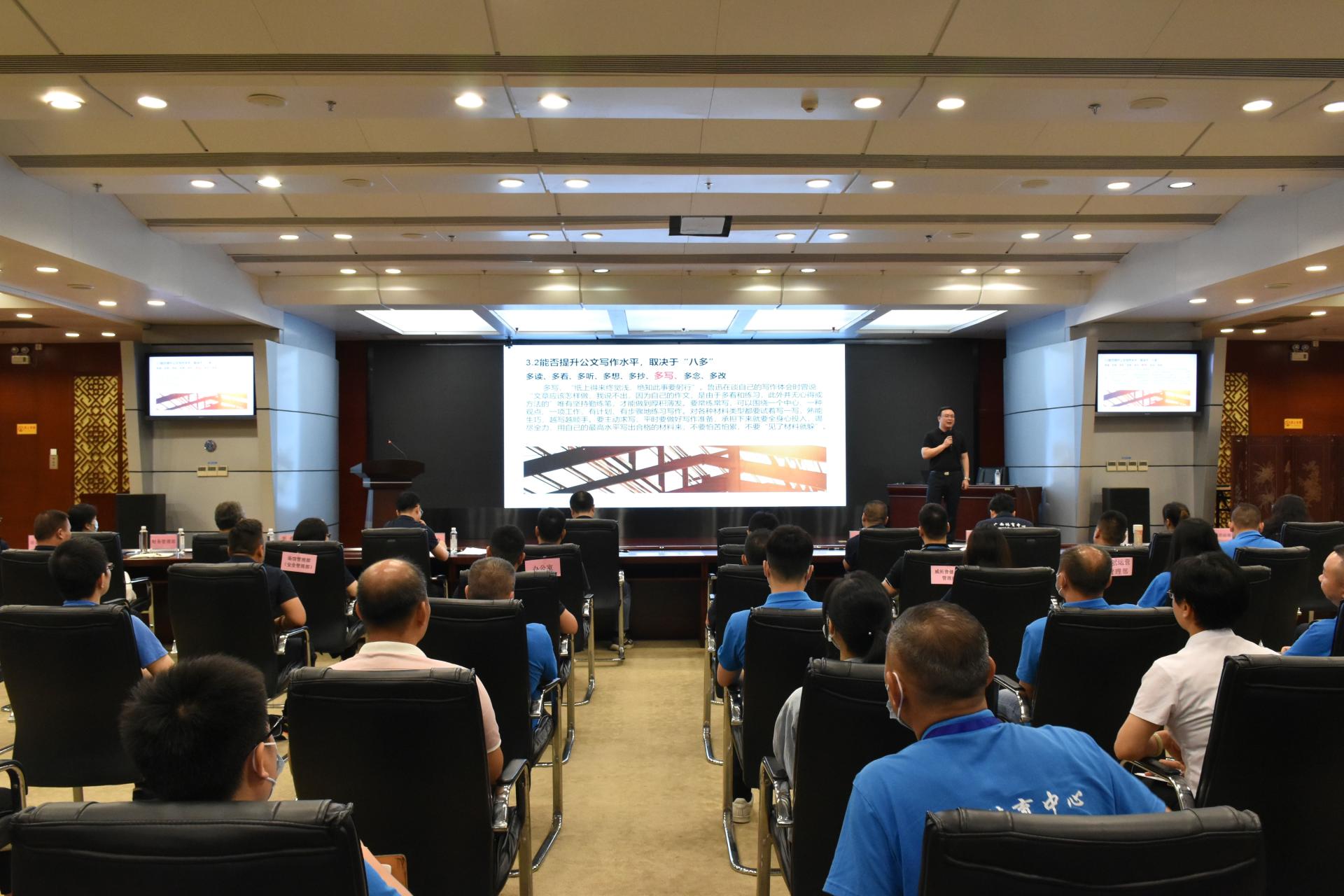 2022年7月11日上午,威寧文體公司舉行公文寫作和辦理培訓(xùn)會。此次培訓(xùn)由黨支部書記、董事長黃志煒主講。黃志煒同志從“公文是什么、寫好公文對提升工作對個人事業(yè)的特殊作用、如何速成公文、常見錯誤及其對策、各層級人員公文工作責(zé)任要求”等11個方面著手,既有詳盡規(guī)范的基礎(chǔ)概念、也有大家關(guān)心的實用性“技巧、攻略”,還有“八心(決心、信心、誠心、用心、良心、細(xì)心、專心、恒心)”“八多(多讀、多看、多聽、多...