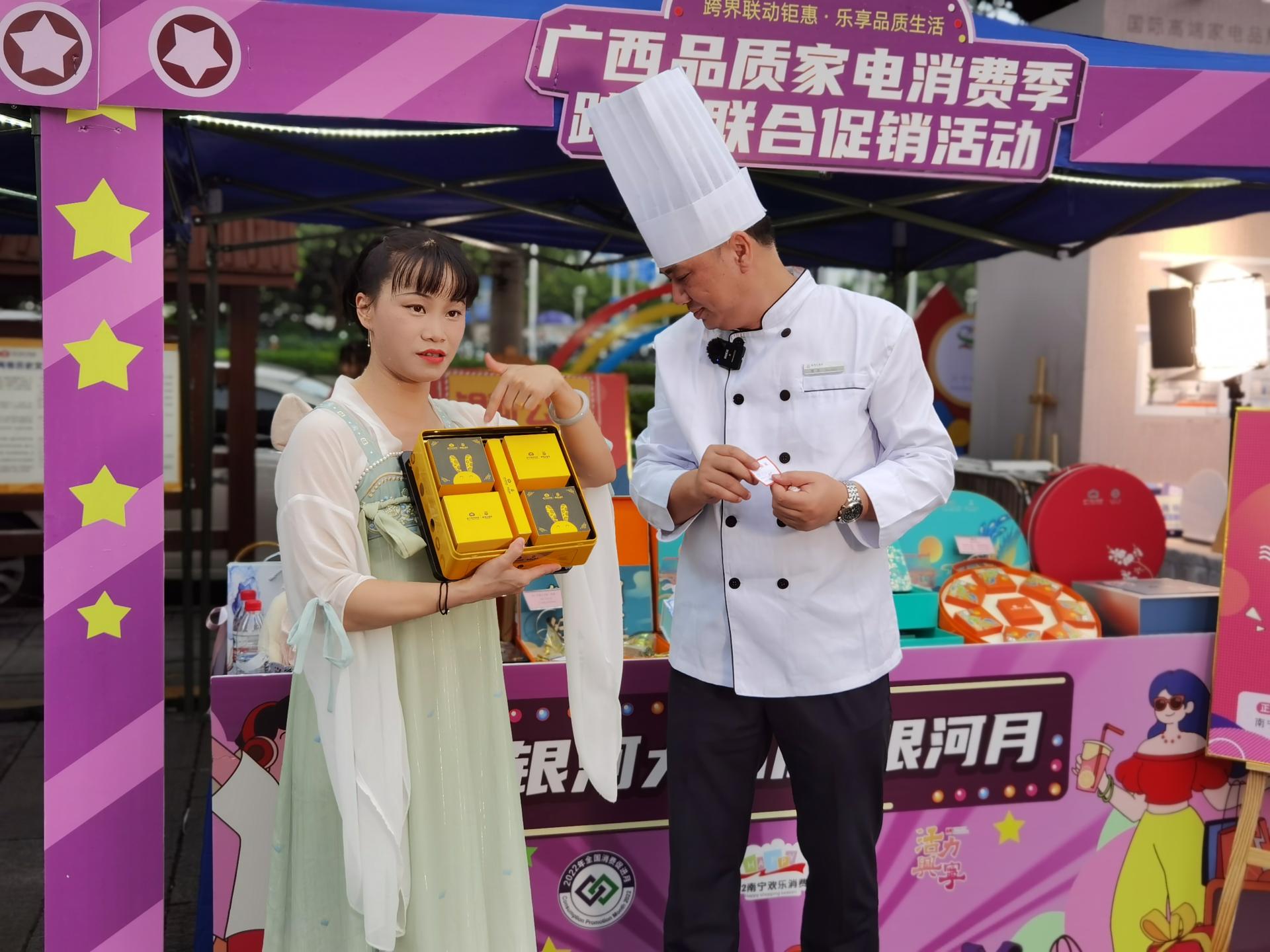 2022年8月20日,銀河公司受邀參加由自治區(qū)商務(wù)廳、南寧市政府主辦,南寧市商務(wù)局、興寧區(qū)人民政府、南寧日報社承辦的“廣西品質(zhì)家電消費季,跨界聯(lián)合促銷活動”。在眾多的參展單位中,銀河大酒店以現(xiàn)場抖音直播吸引了眾多觀眾的目光,成為展會現(xiàn)場一道獨特的風景線?!艾F(xiàn)在大家看到的,是銀河大酒店匠心打造的‘銀河月’,不僅用料考究,而且精準把控月餅的烘烤溫度、著色,除了有伍仁叉燒等傳統(tǒng)口味,還推出...