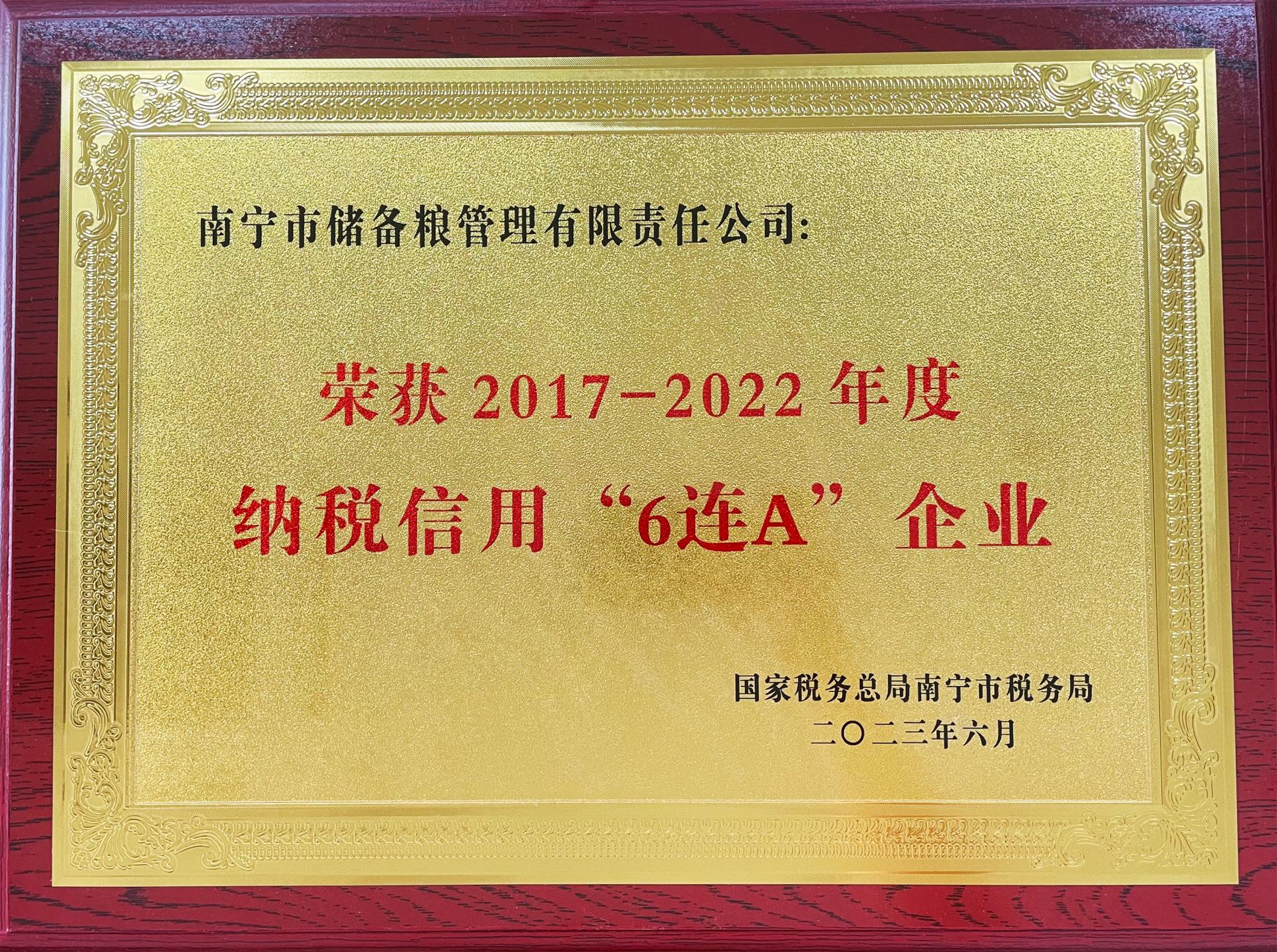 喜訊!儲備糧公司連續(xù)6年榮獲納稅信用“A級”企業(yè)稱號