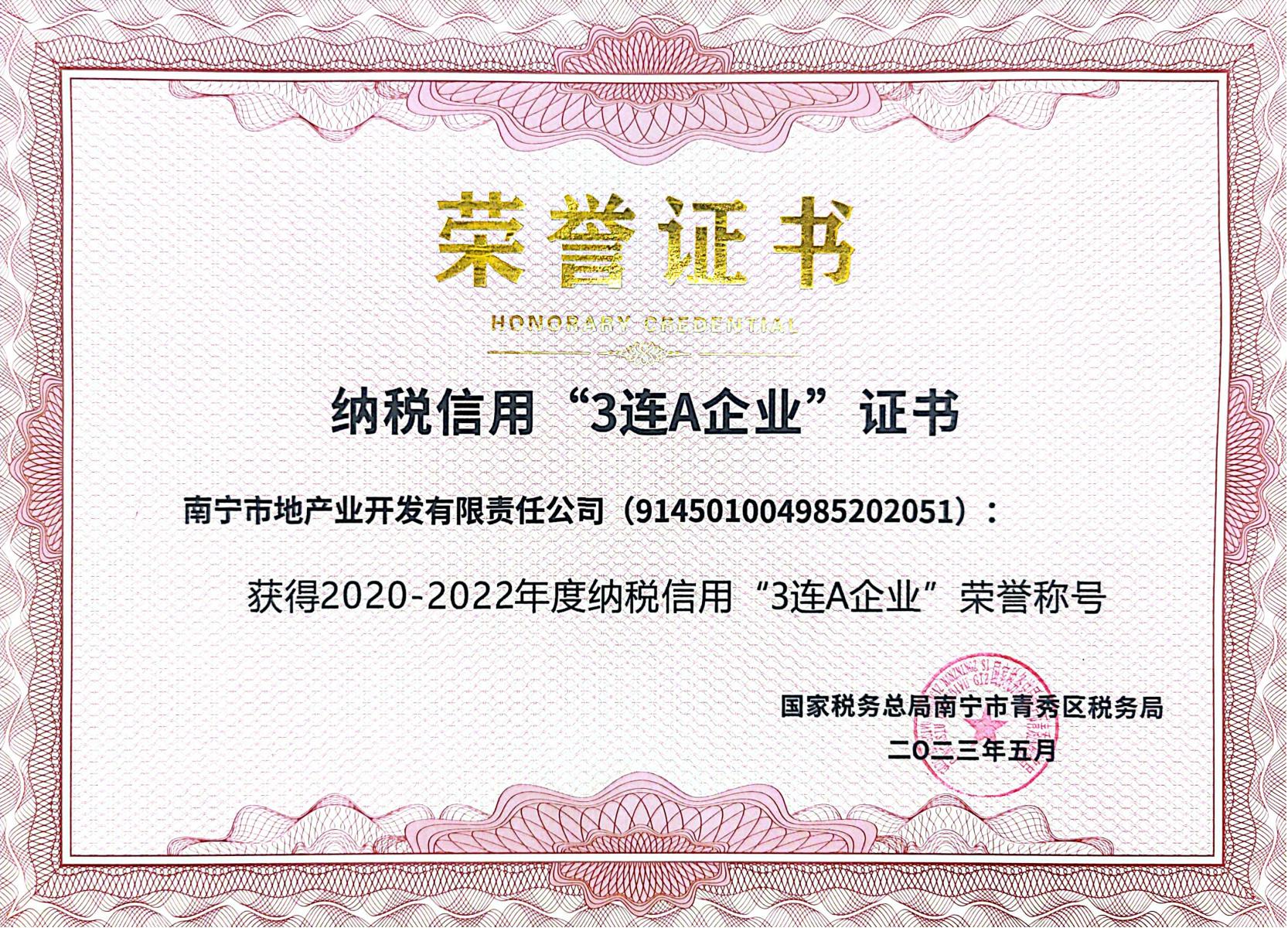 喜報(bào)!地產(chǎn)業(yè)公司榮獲2020-2022年度納稅信用“3連A企業(yè)”榮譽(yù)稱號